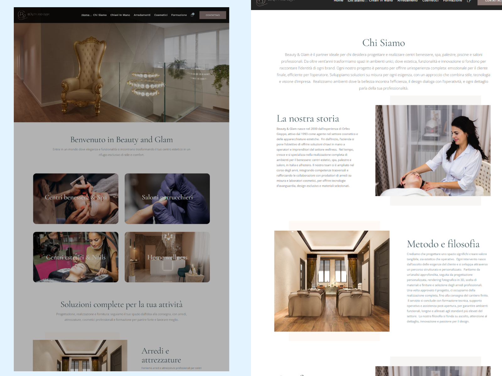 Beauty and Glam is a company specializing in turnkey solutions for beauty centers, spas, hair salons, and wellness spaces. The goal of this project was to design and develop a sophisticated, elegant website that reflects the brand’s premium positioning while clearly presenting its services, products, and complete business solutions.