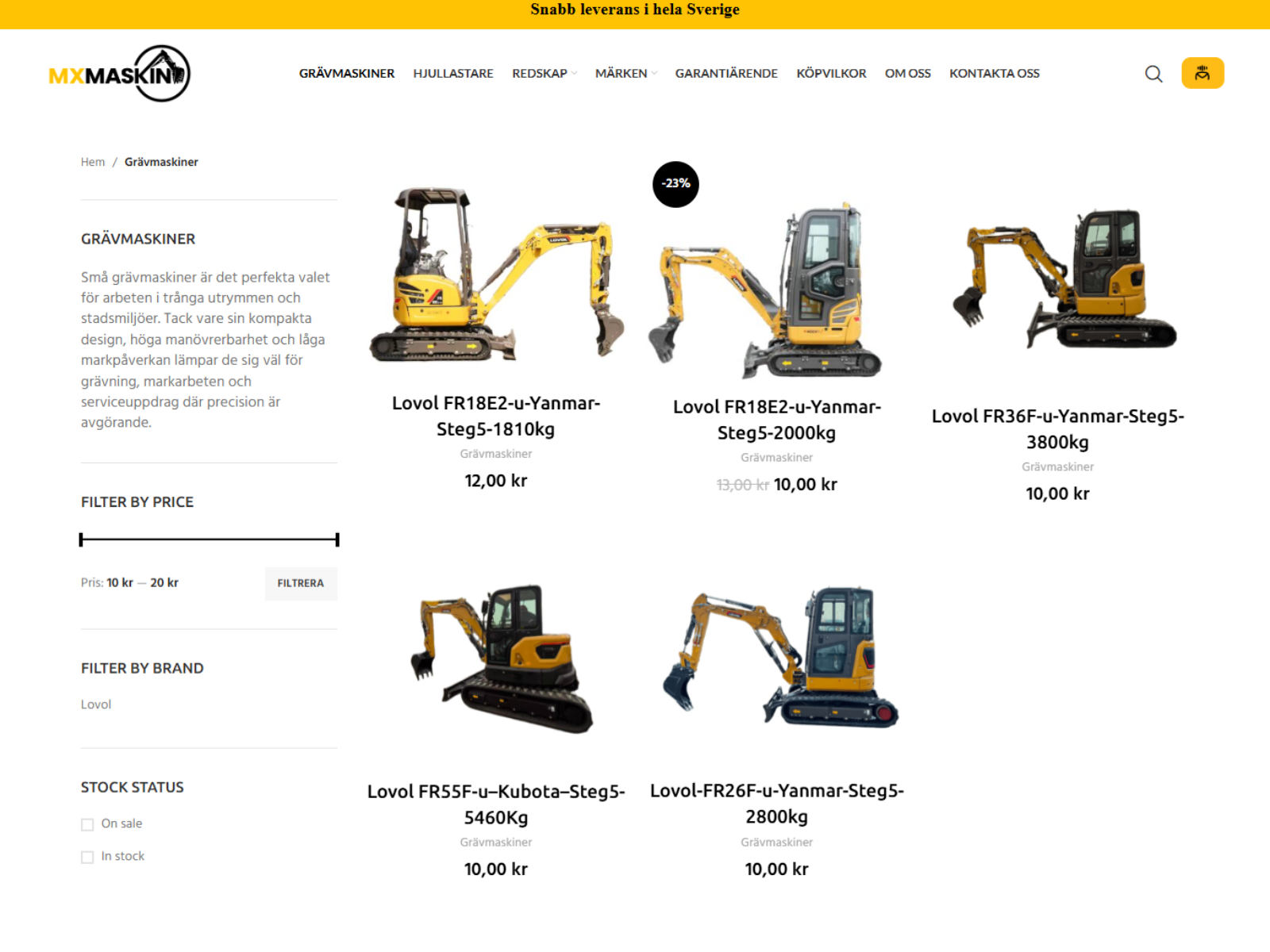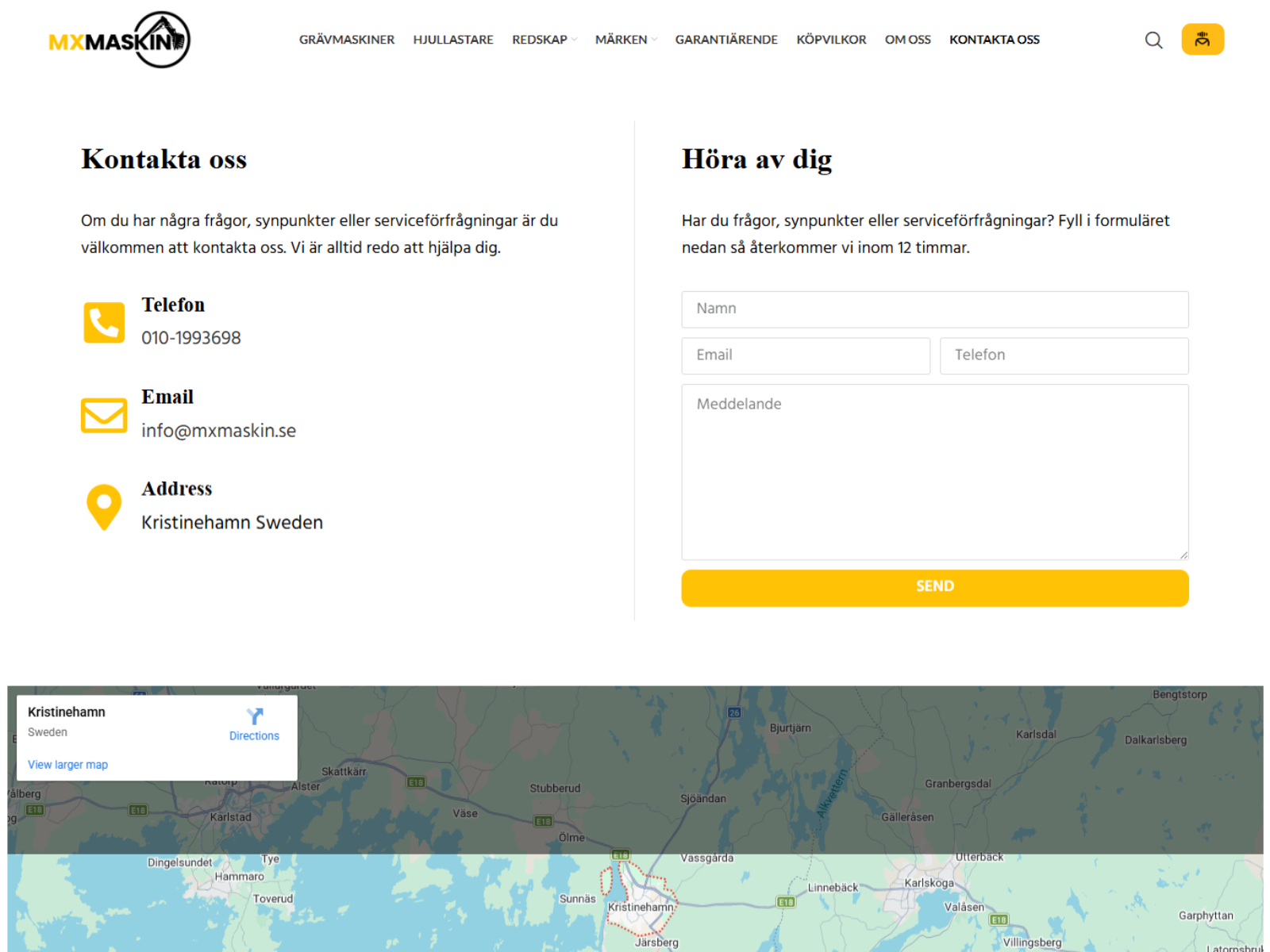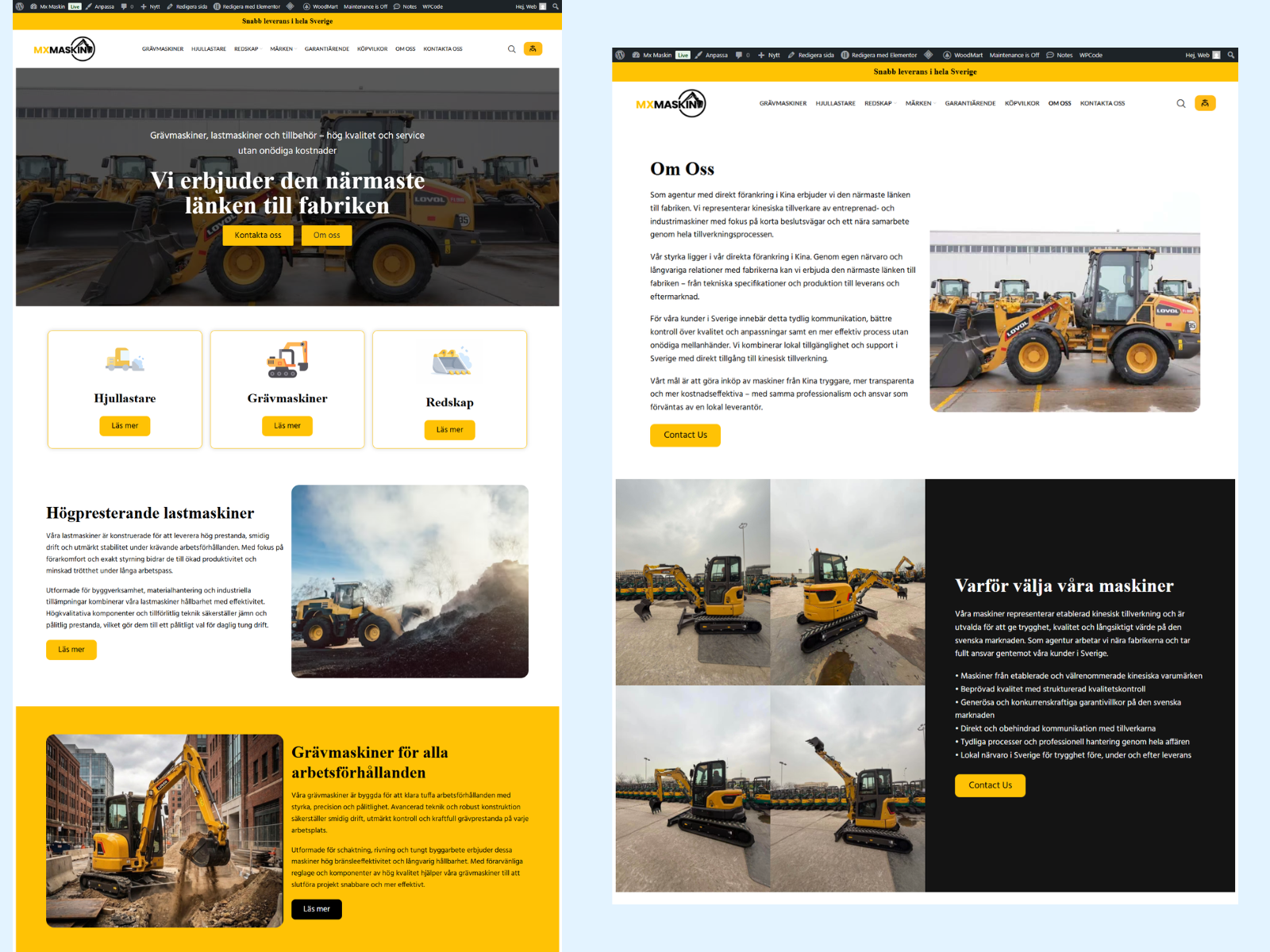 Ensured mobile responsiveness and optimized structure for SEO targeting the Swedish construction equipment market.