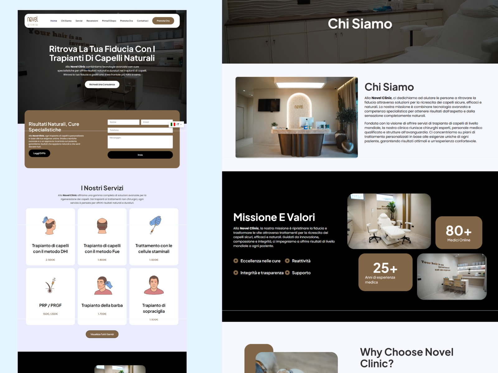 Novel Clinic is a specialized hair transplant and regenerative treatment center offering advanced procedures such as DHI, FUE, PRP/PRGF, and stem cell therapy. The goal of this project was to design a professional, medical grade website that builds trust, communicates expertise, and drives consultation bookings.